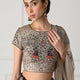 A celebration of heritage, this finely embroidered Madhubani blouse showcases intricate folk artistry on a neutral base. The classic silhouette is elevated with a striking back cut-out, adding contemporary charm to tradition. Perfect for festive and statement looks.